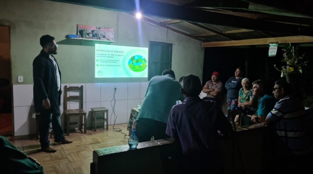 Na localidade foi apresentado o projeto bem como medidas de educação ambiental que possam melhorar a qualidade de vida na comunidade, demonstrando benefícios que o projeto pode trazer se implantado por um número significativo de produtores de uma mesma região. Após a apresentação, os produtores sanaram suas dúvidas com a equipe a respeito de documentação necessária para participação no projeto, itens expostos no termo de compromisso e áreas elegíveis para aplicação.