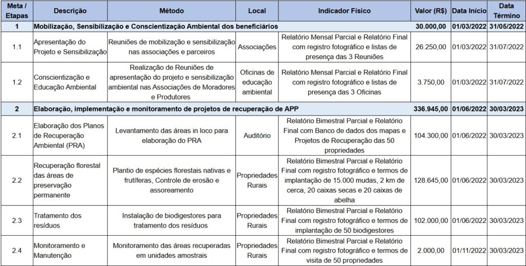 Meta 1. Mobilização, Sensibilização e Conscientização Ambiental dos beneficiários